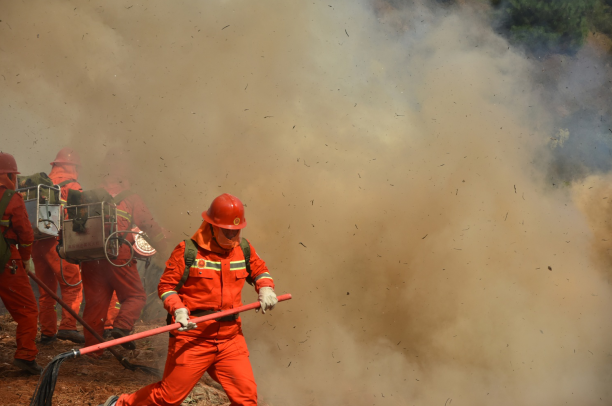 在灭火过程中,队员们充分运用灭火装具和日常所学的灭火知识,采取常规灭火、以火攻火、以水灭火等作战方式,让火势在短时间内得到了有效抑制。但随后由于风向突变,大火开始“反扑”,浓浓的烟雾将灭火队员瞬间笼罩,情势告急。在这紧急时刻,全体灭火队员按照防灭火应急预案规范操作,现场忙而不乱,没有一人当逃兵,并根据火势有序调整了灭火方位,很快占据了上风……