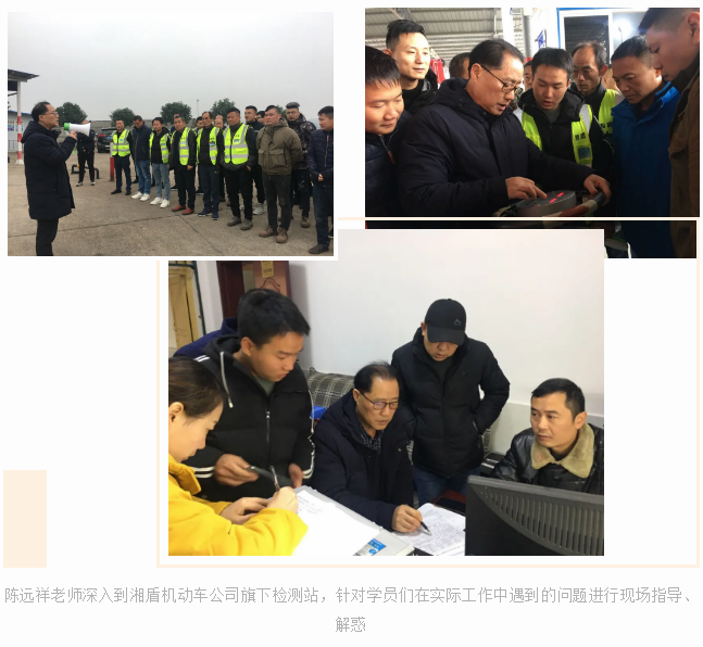 理论培训结束后,陈远祥老师还深入到湘盾机动车公司旗下检测站,与学员们进行互动交流,并就学员们在实际工作中遇到的问题进行现场指导、解惑。